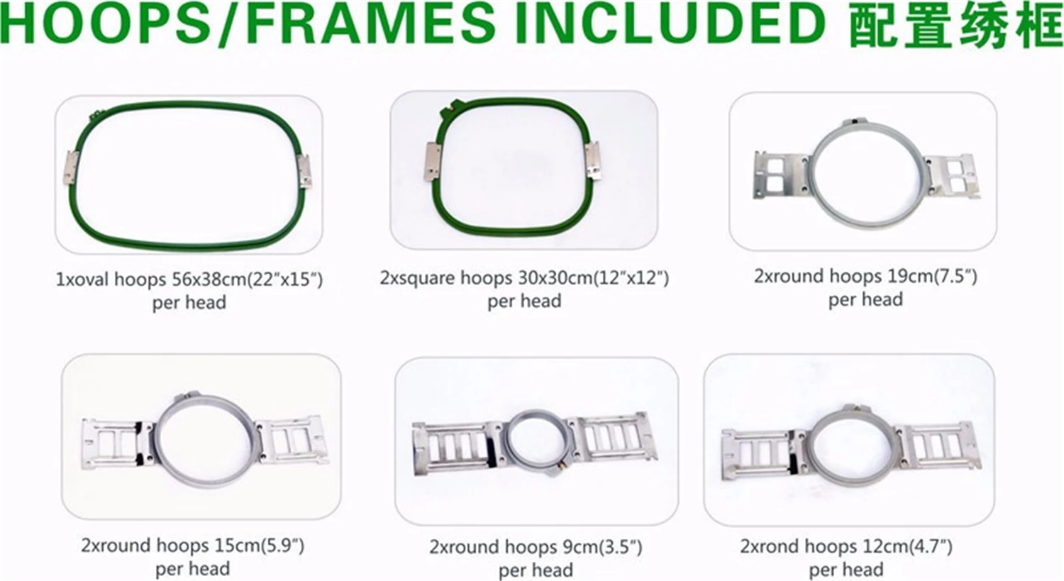8) USB port and network to transfer design available various embroidery hoop sizes to meet customer's demands.